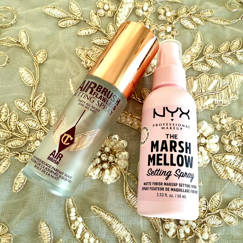 Tämän syksyn aikana on tullut käytettyä useampaa meikin kiinnityssuihketta ja jos pitäisi nyt valita kaksi parasta niin olisivat ne nämä: Nyx The Marshmellow Setting Spray ja Charlotte Tilbury Airbrush Flawless Setting Spray.